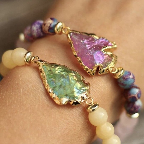 LS-A916 INSホット! 天然宝石ビーズ矢印ブレスレットスタックブレスレットセットファッションチャームブレスレットギフト用