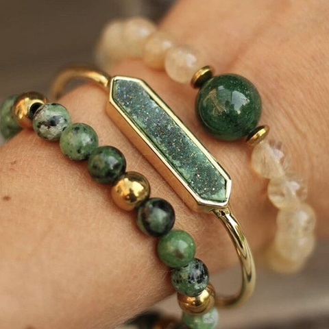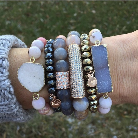 LS-A2340素晴らしいファッション女性男性天然宝石druzy石チャームブレスレットセットcz舗装バー型チャーム