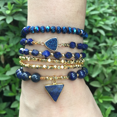 LS-J566スタックブレスレットブルーカラーブレスレットセットジェムストーンビーズブレスレット手作りジュエリー