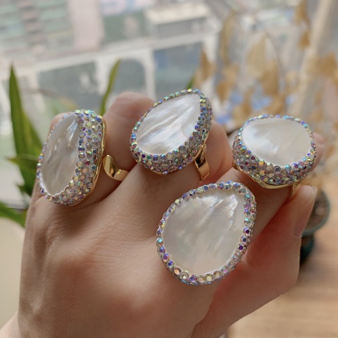 LS-B8068卸売ラインストーンファッションリングジュエリー分厚いアワビシェルパールリング金メッキリング女性パーティー