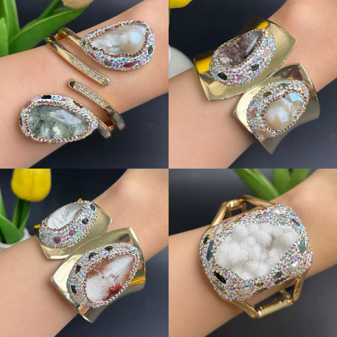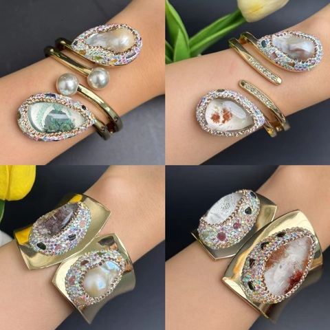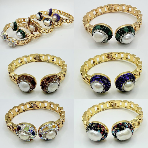 LS-B8139 зимний модный браслет с массивными манжетой красивый браслет с жемчугом необработанный драгоценный камень браслет для женщин винтажный браслет позолоченный